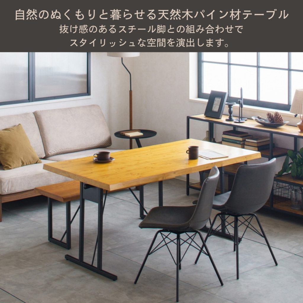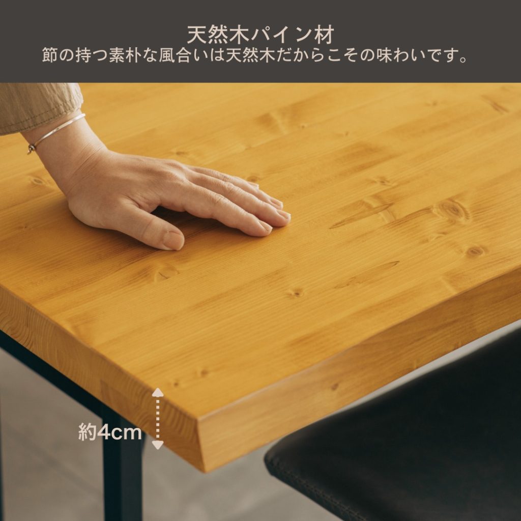 素朴さと温かみを感じられるパイン材を使用しています。天然木ならではの節が魅力です。