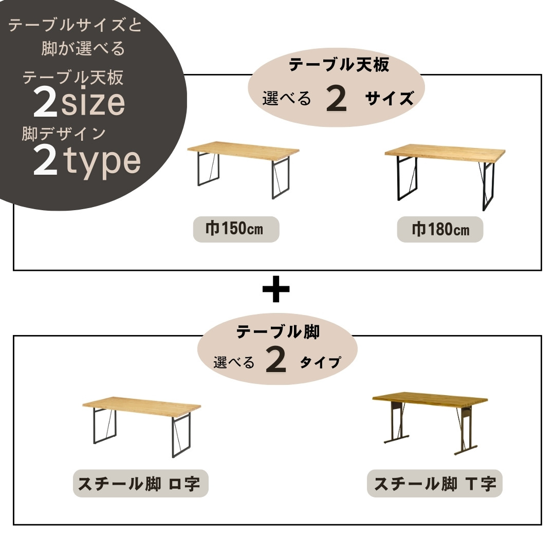 モダンなスチール脚は2種類(ロ字型、T字型)
