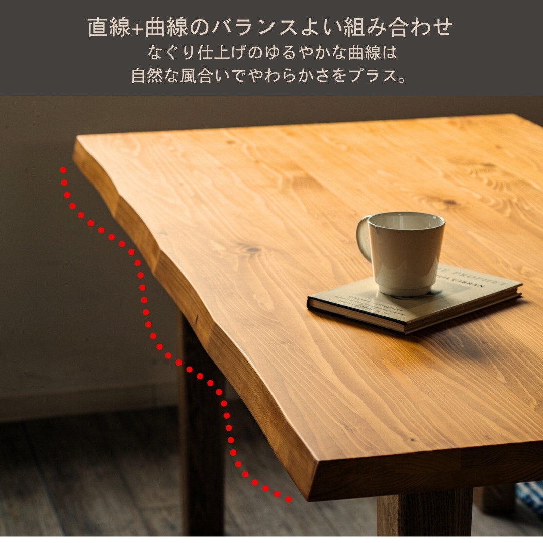 素朴さと温かみを感じられるパイン材を使用しています。天然木ならではの節が魅力です。