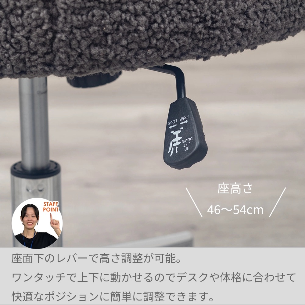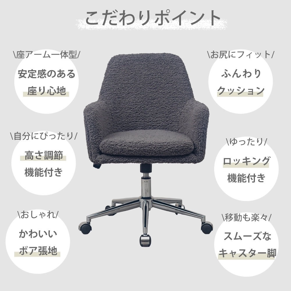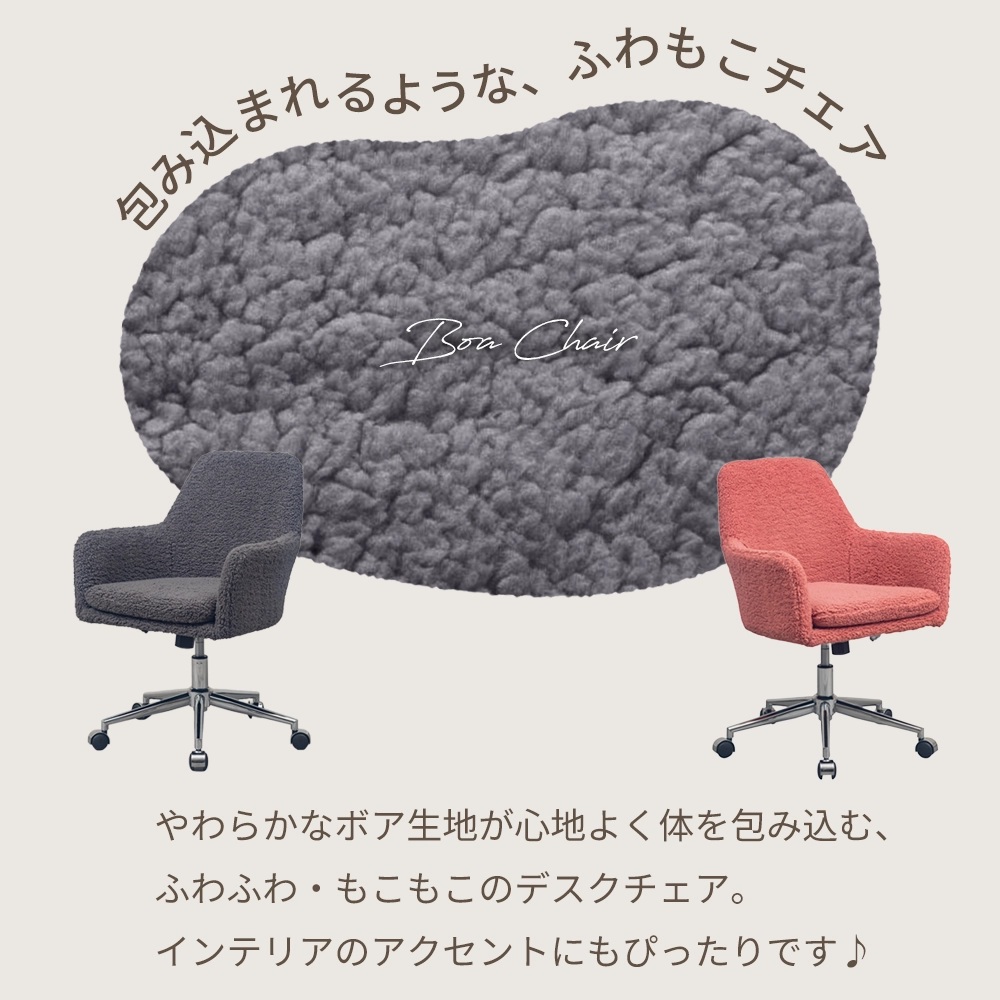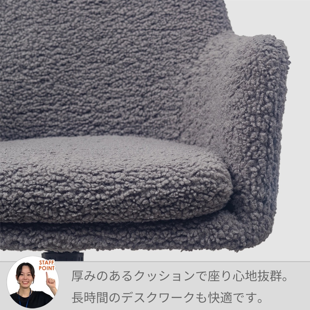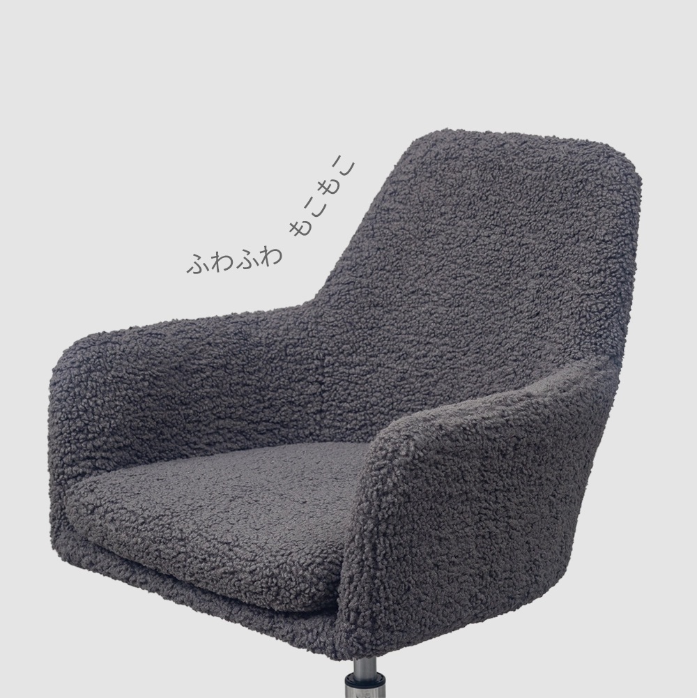 オフィスっぽくない見た目がオシャレな モコモコのボア生地が可愛らしいチェアー。