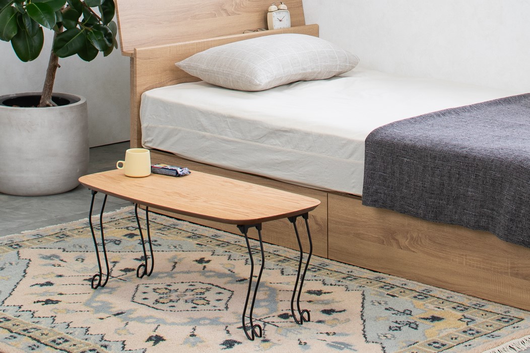 天然木のコンパクトな折りたたみテーブル。