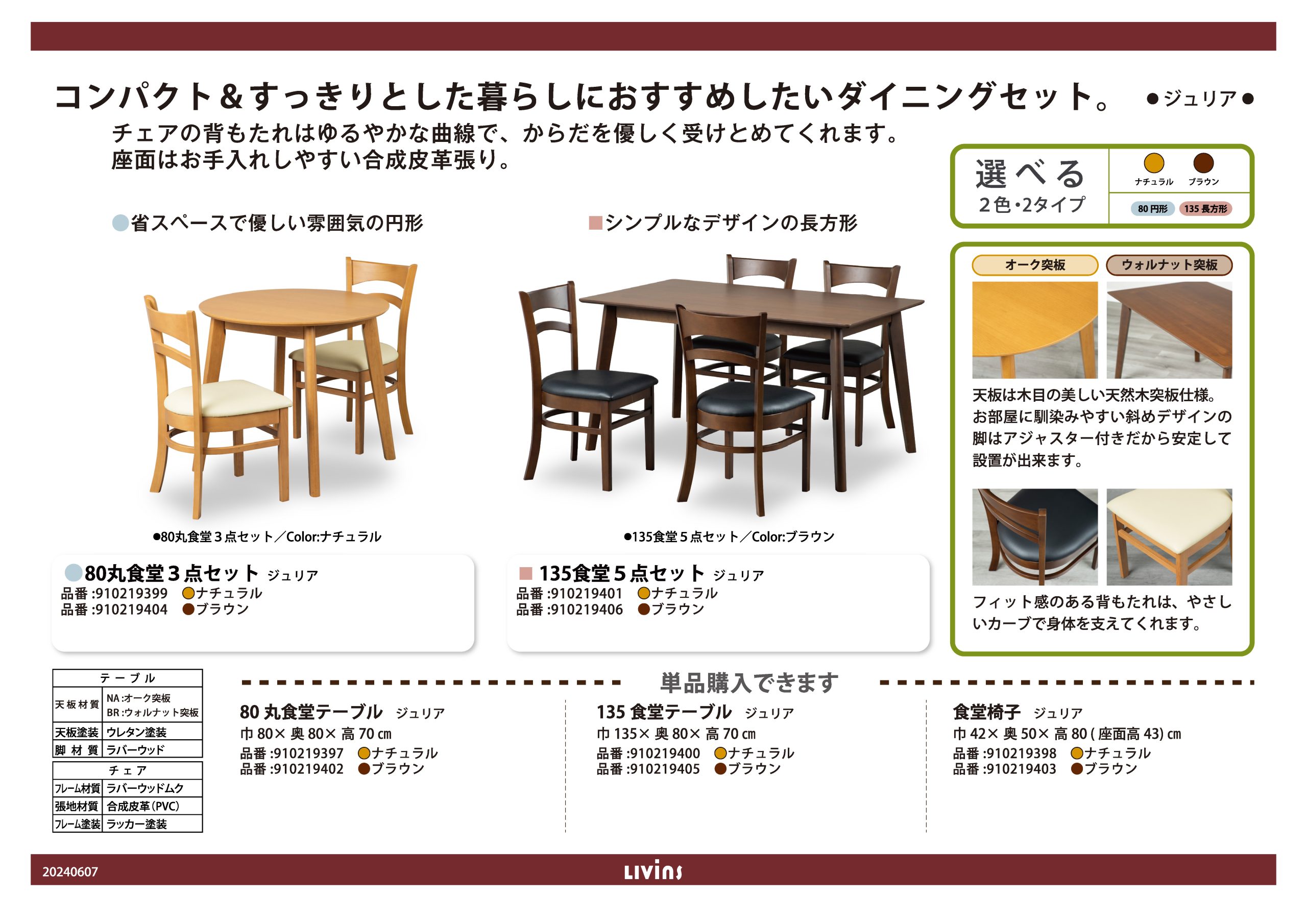テーブルの天板は木目の美しい天然木突板仕様。