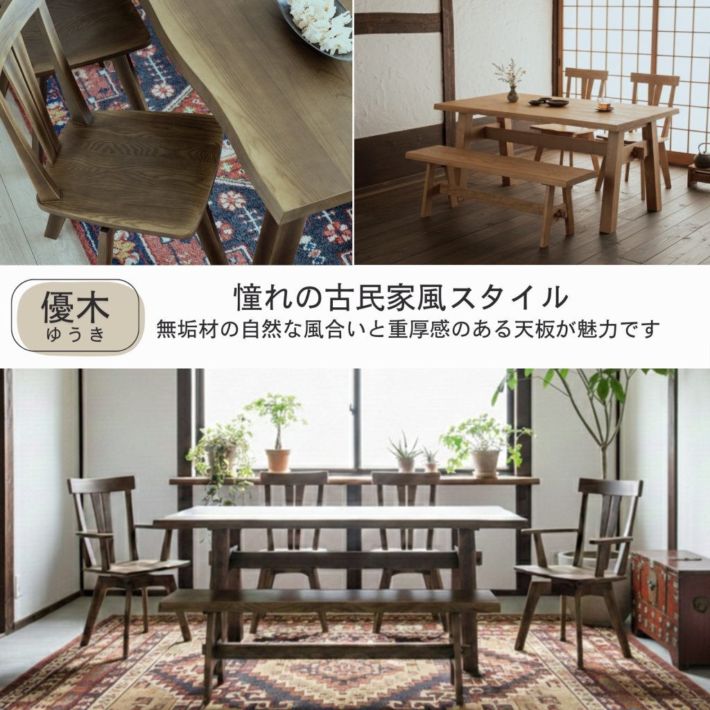 憧れの古民家風スタイルが楽しめるダイニングセットです。