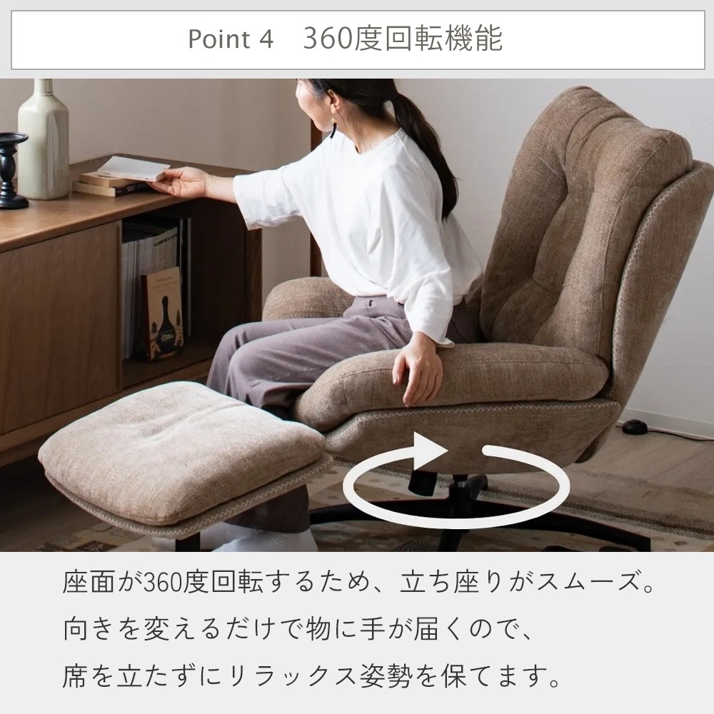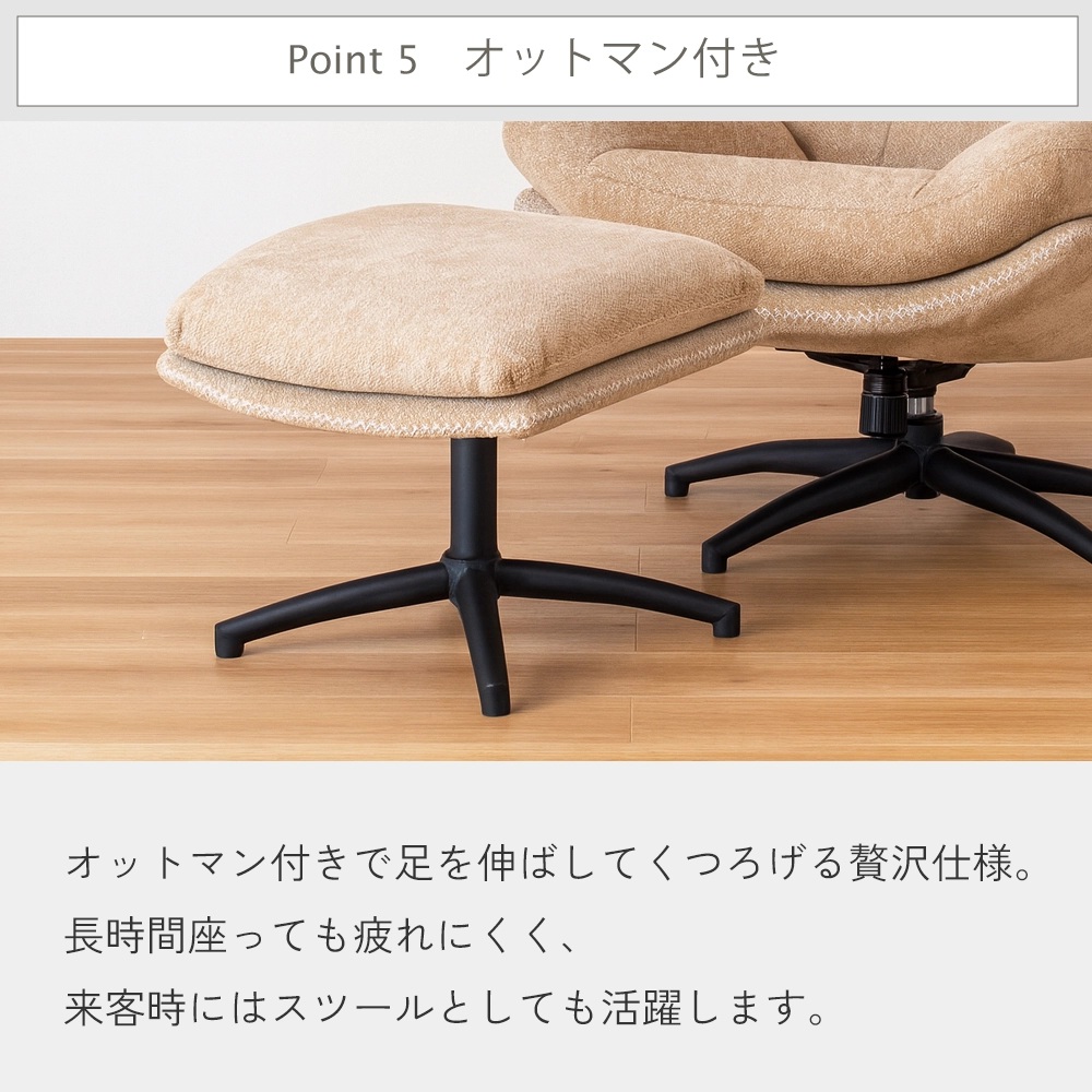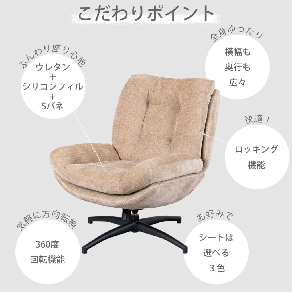 疲れた身体をソファーに預け、癒しのひと時を ご提供します。 カラーはインテリアに馴染みやすい3色を厳選。 ロッキング機能付きでリラックス効果を満喫。