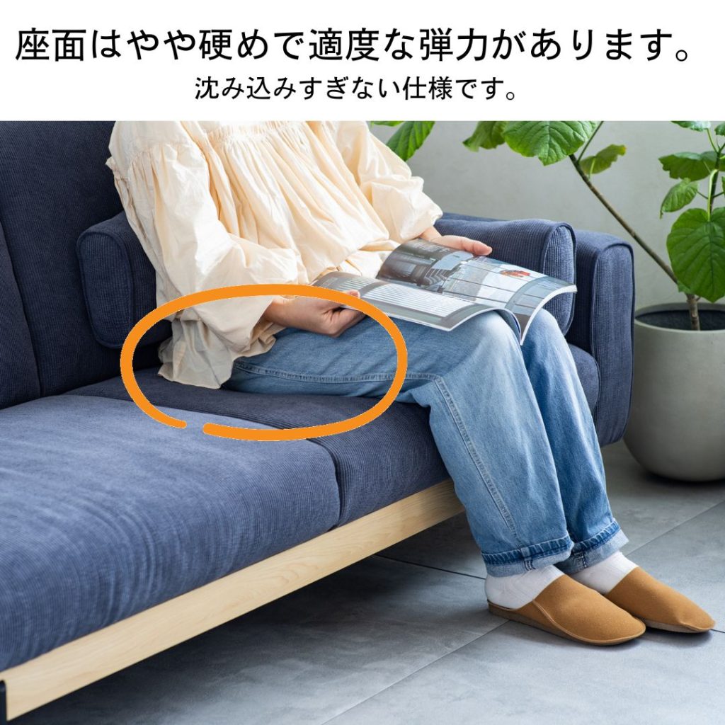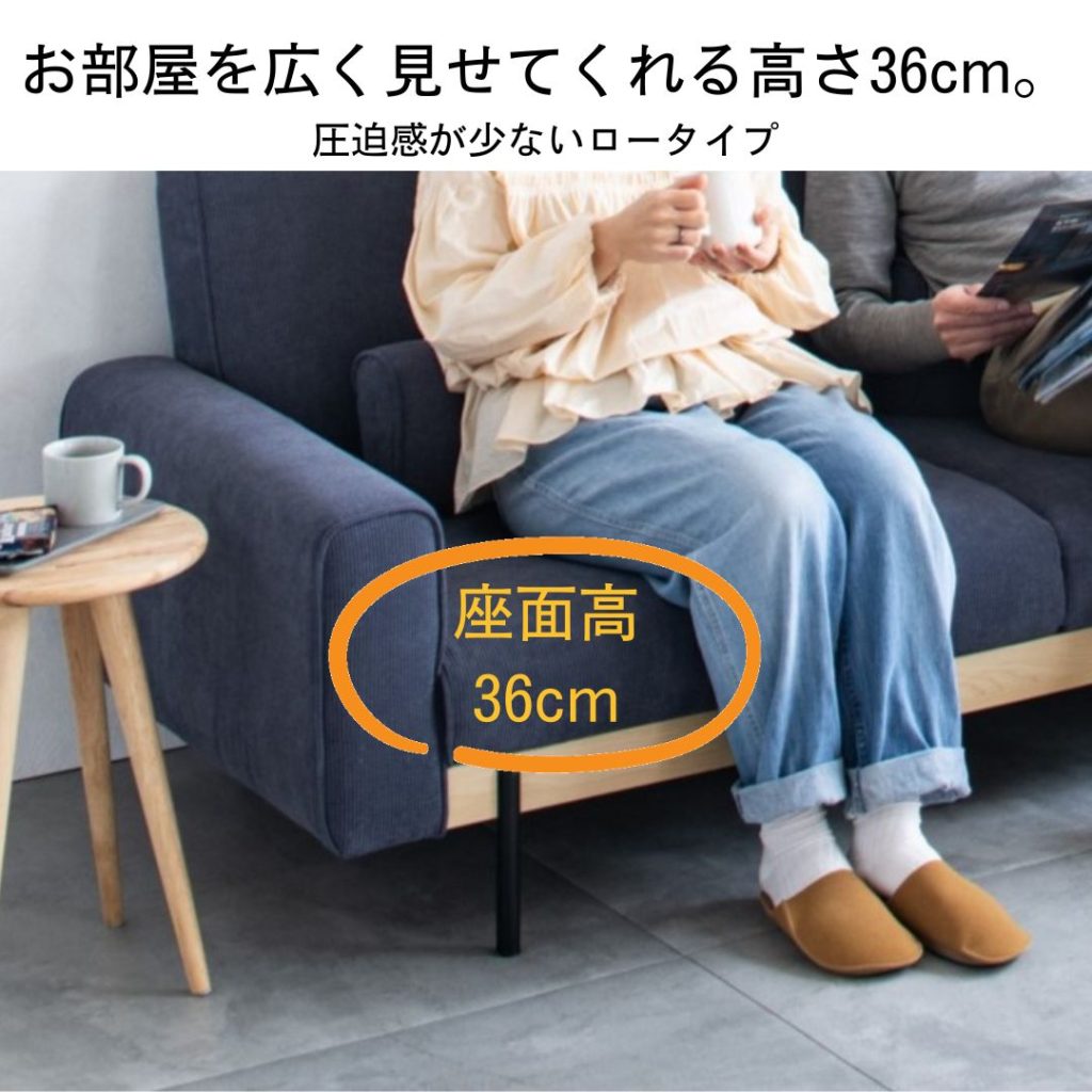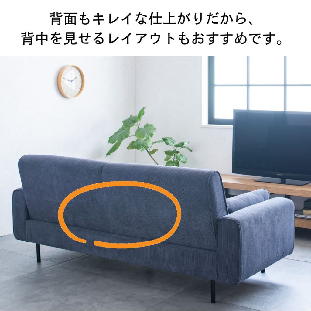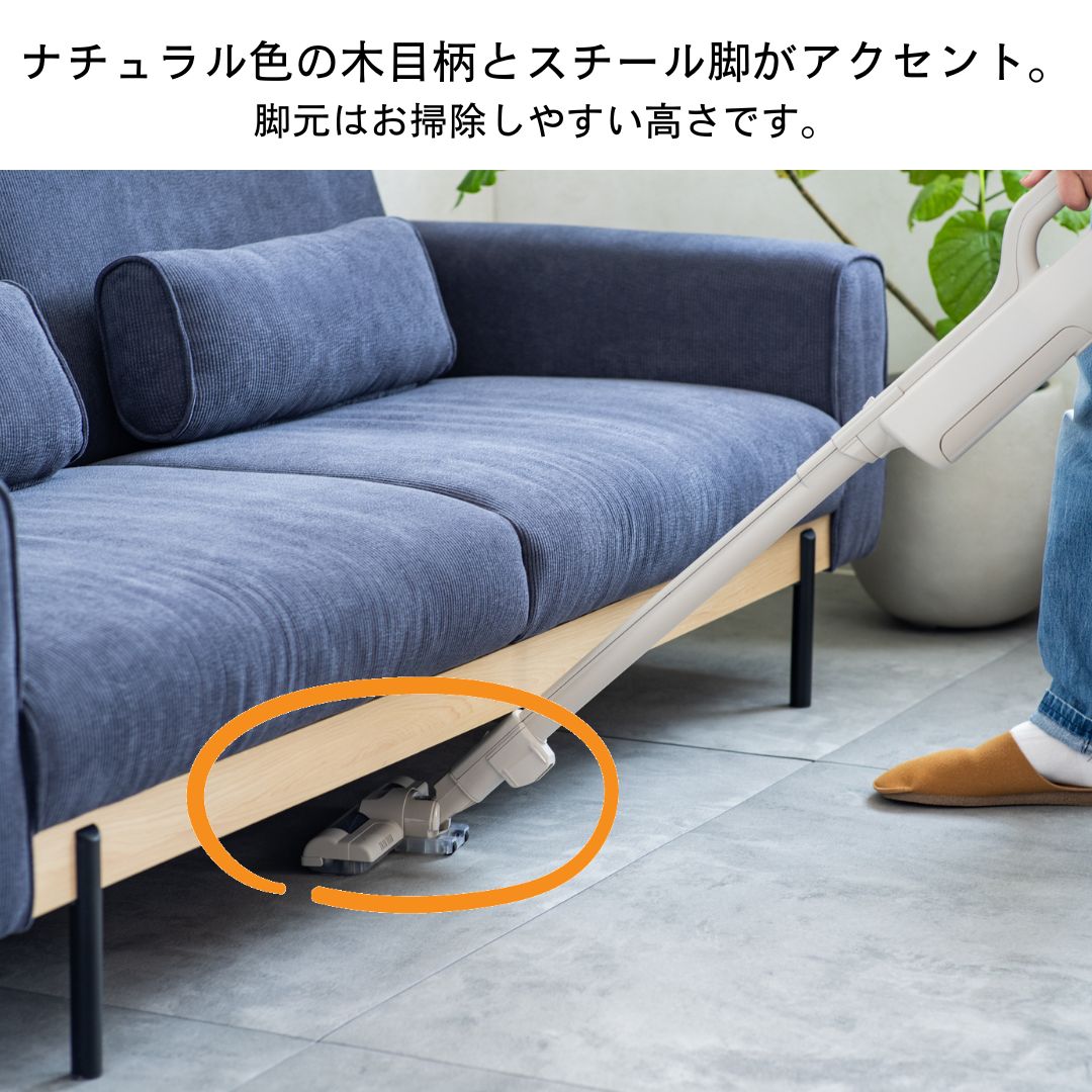 ロータイプの3Pソファー。 コーデュロイを使用した触り心地の良いソファー。 ボルスタークッション2ヶ付。 すっきりとしたスチール脚
