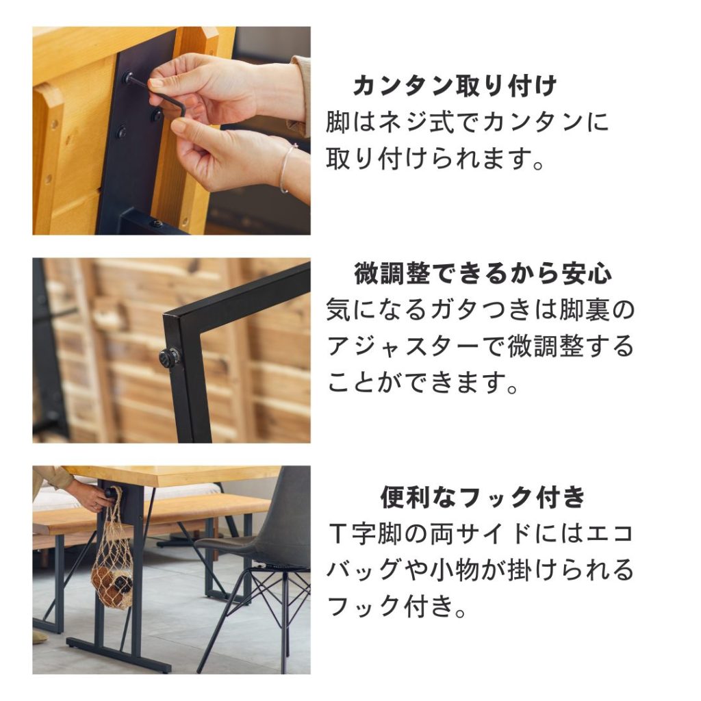 T字脚の両サイドにはエコバッグや小物を掛けられるフック付きです。
