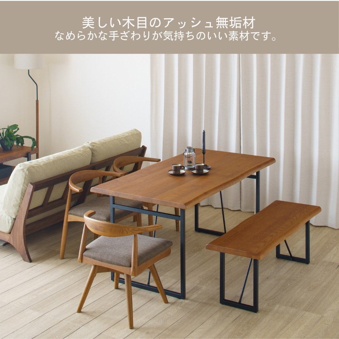 天板は美しい木目のアッシュ無垢材。滑らかな手ざわりが気持ちのいい素材です。
