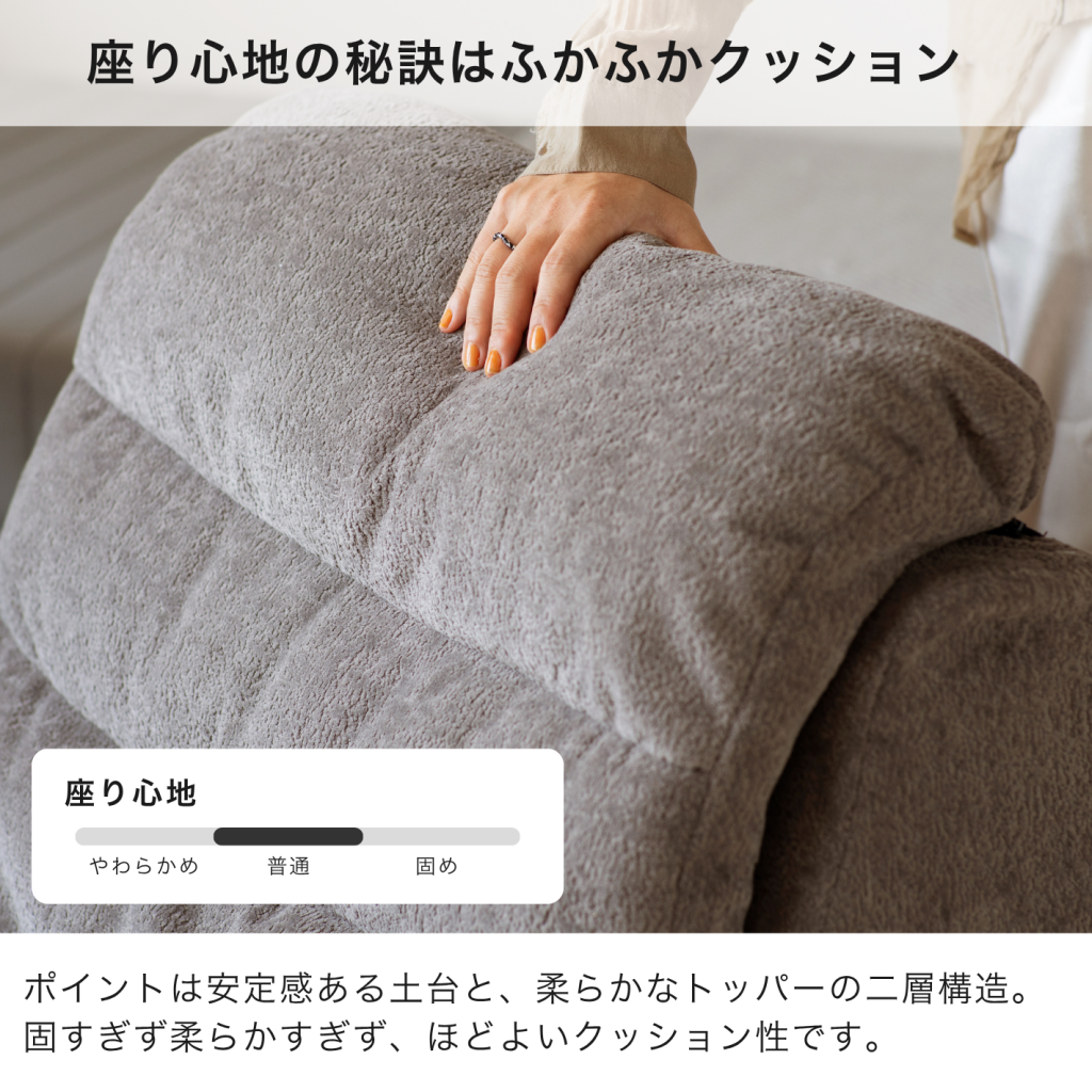 二層のウレタン構造は、絶妙な硬さと広さで誰でもゆったり。
