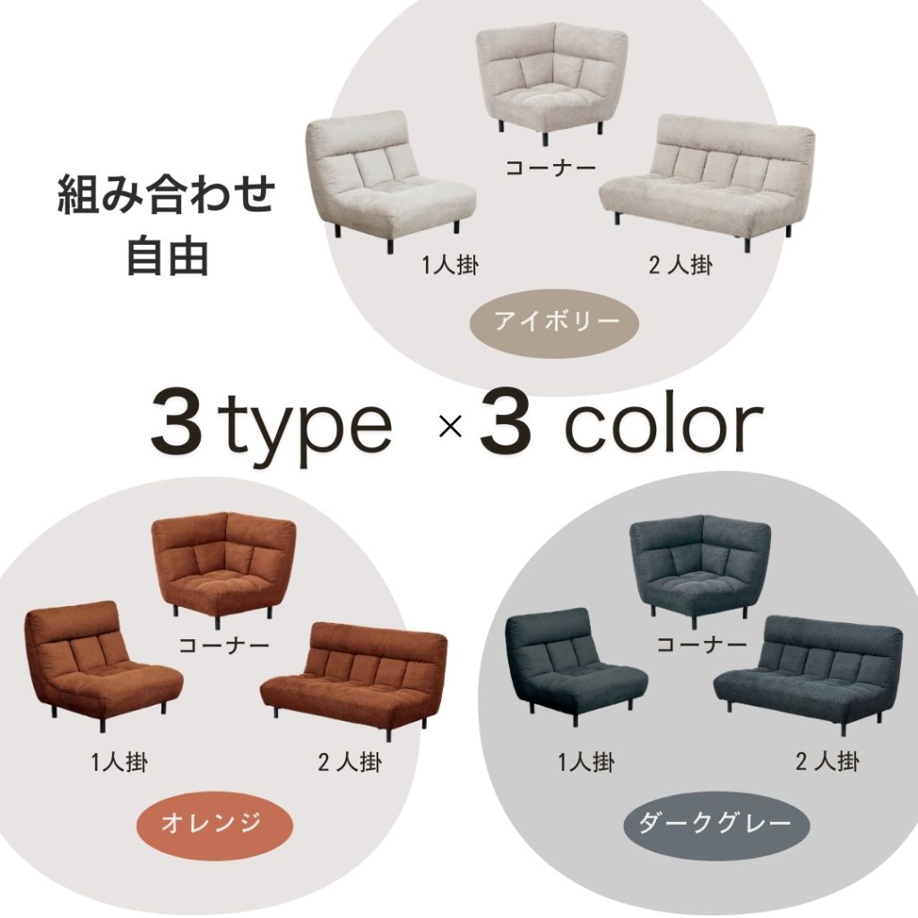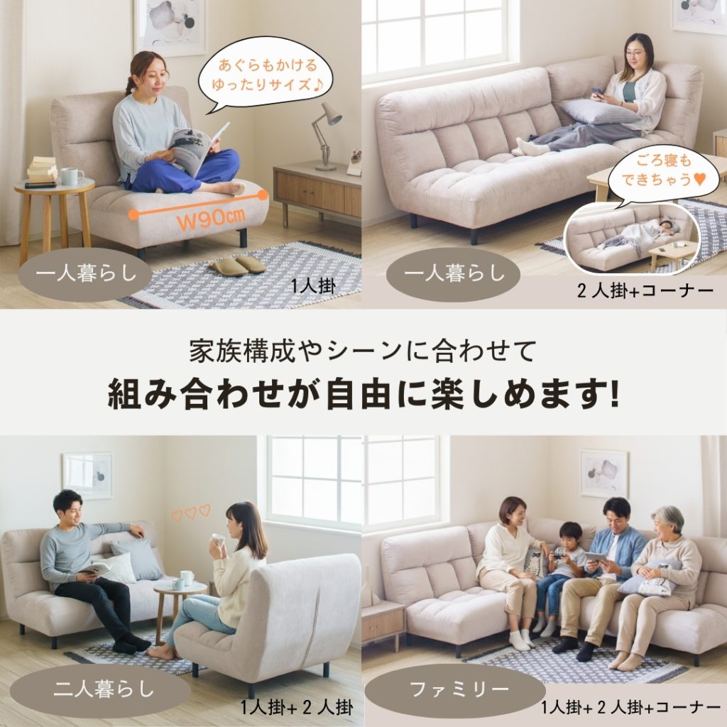 コーナーソファとしてだけでなく、1人掛け、2人掛け、コーナーをお好きな形に組み合わせたり、もちろん単体としても使用できる優れもの。様々なスタイルでお使いいただけます。