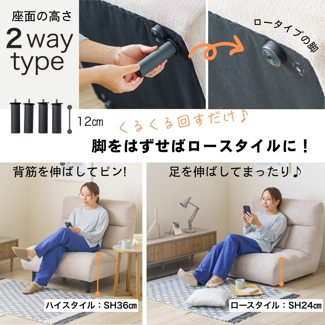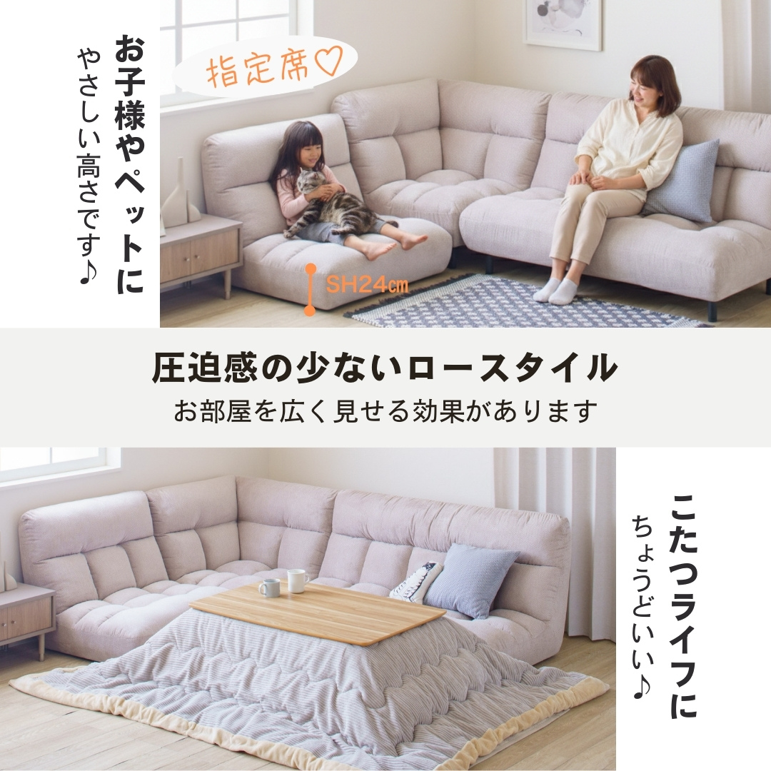 脚をは外して使うことができるのでコタツやローテーブルに最適です。また小さなお子様の落下の心配がなくワンチャンやネコちゃんの腰にも優しい仕様です。圧迫感がなく空間を広々と使うことができます。
