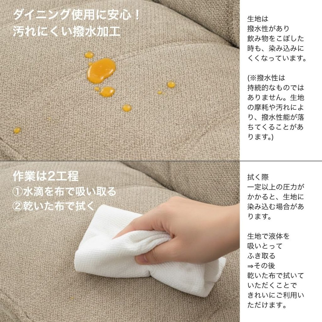 ●ふっくらとしてた座面と背中は、食後もゆったりとくつろげます。汚れやひっかき傷に強い生地なのでダイニングでも安心してご使用できます。