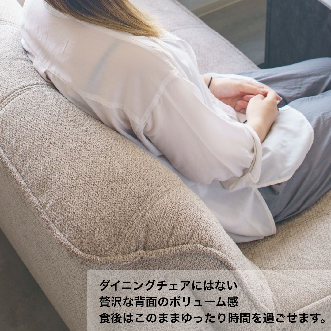 ●ふっくらとしてた座面と背中は、食後もゆったりとくつろげます。汚れやひっかき傷に強い生地なのでダイニングでも安心してご使用できます。