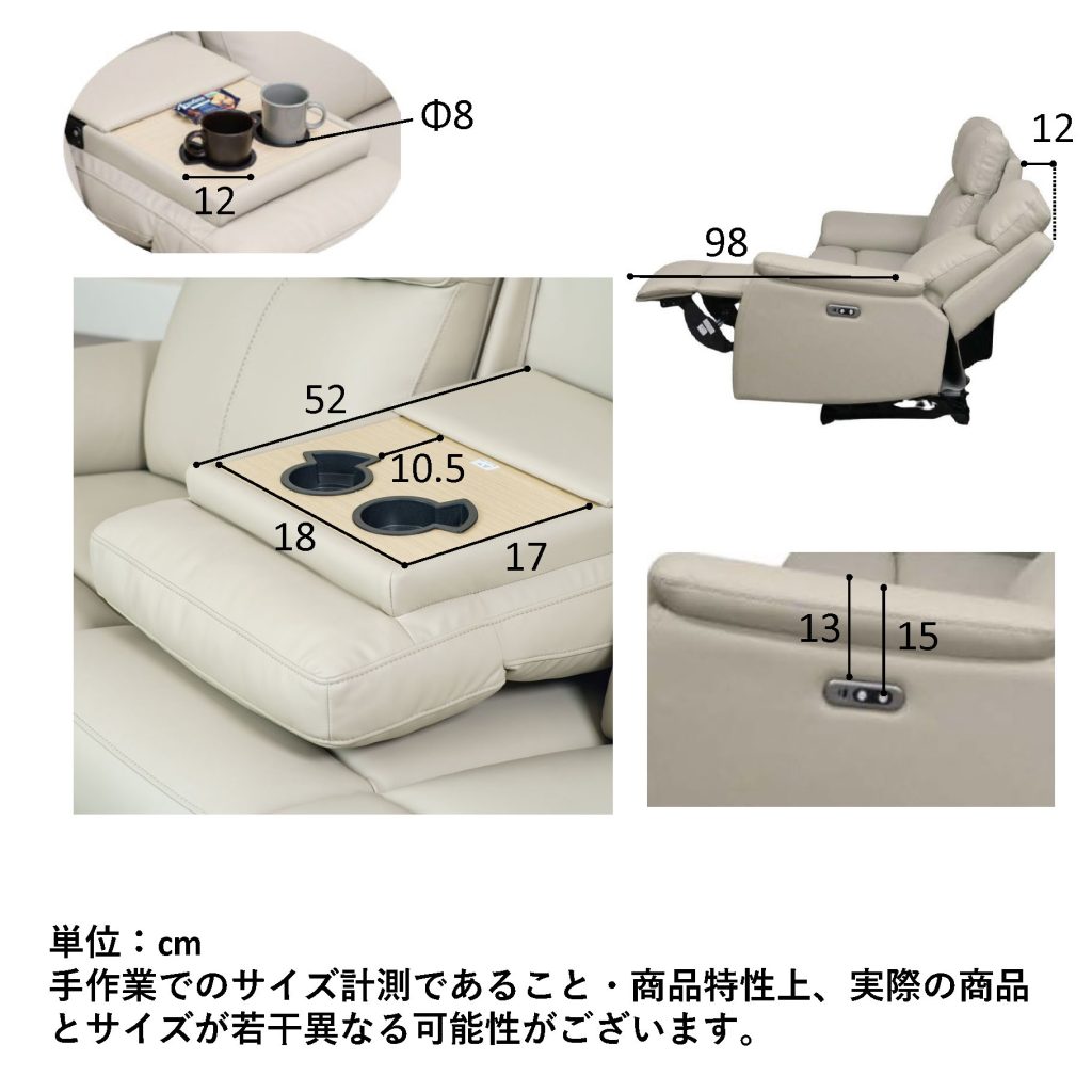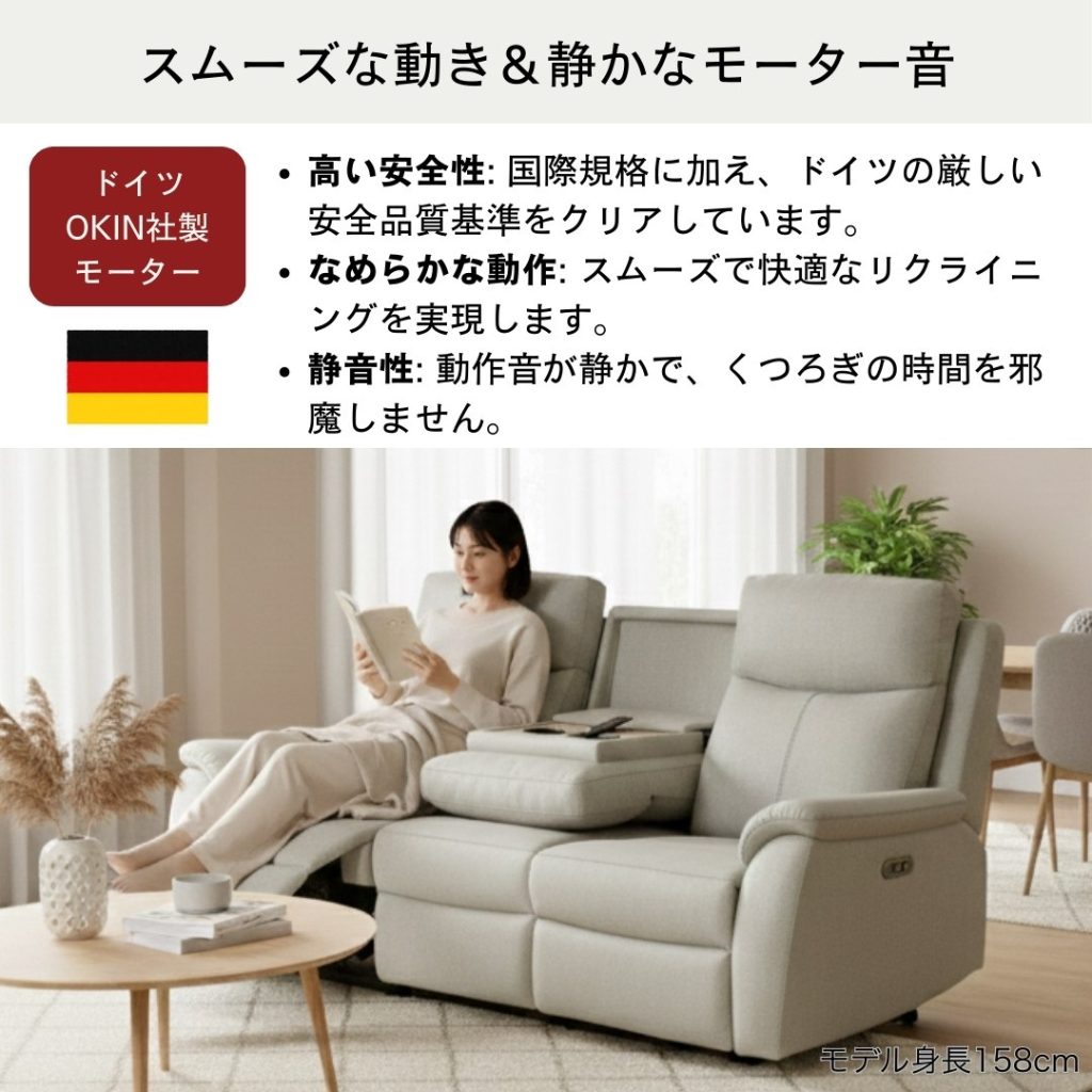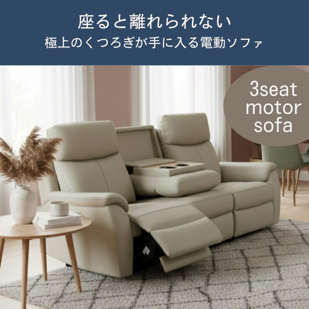動かずに全てが完結、USBポート・テーブル付きの電動ソファです。