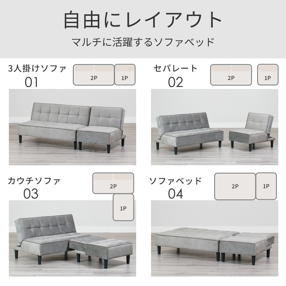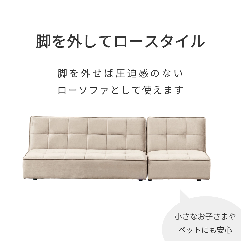 4パターン!マルチに活躍するソファベッドです。脚を外せばロータイプソファにもできます。