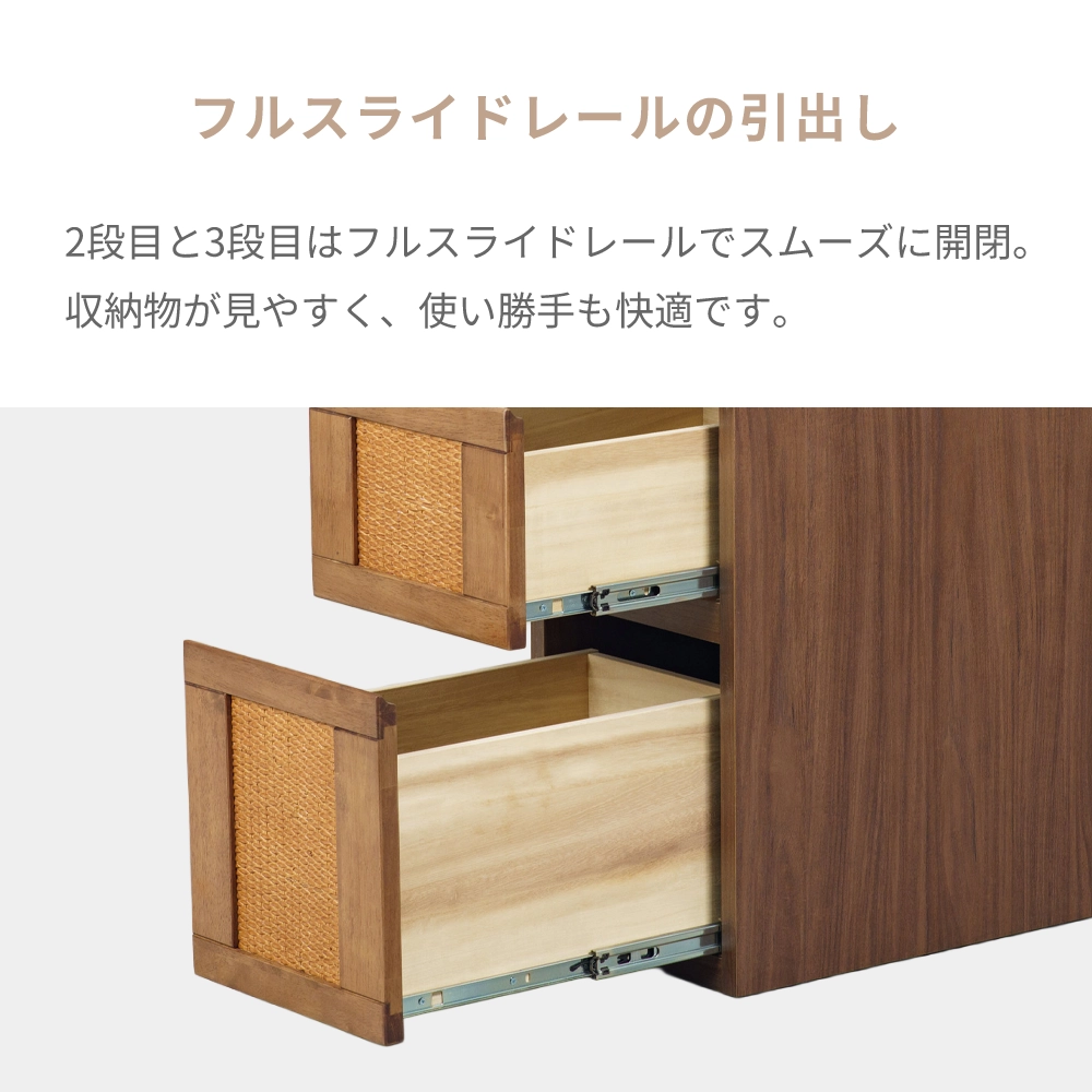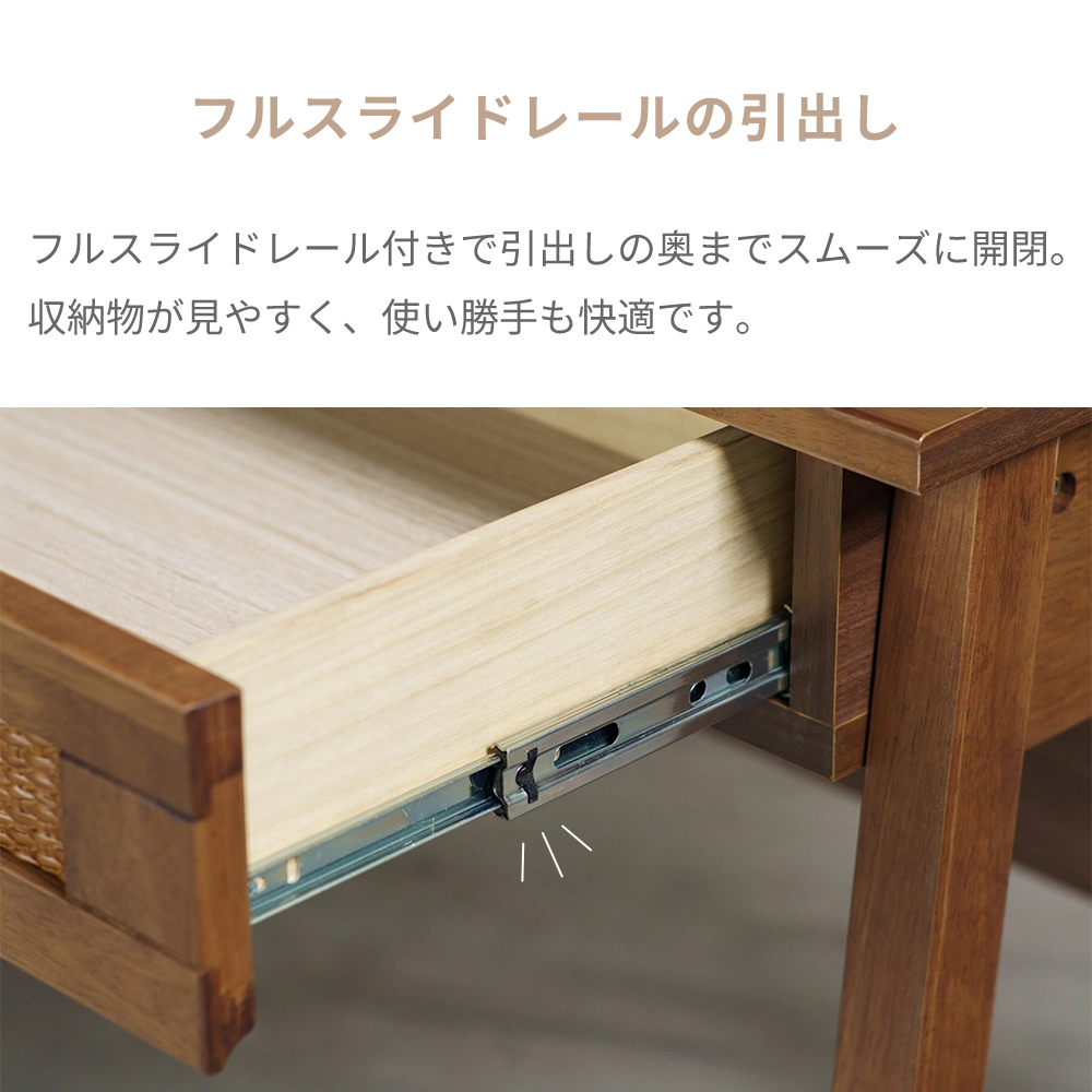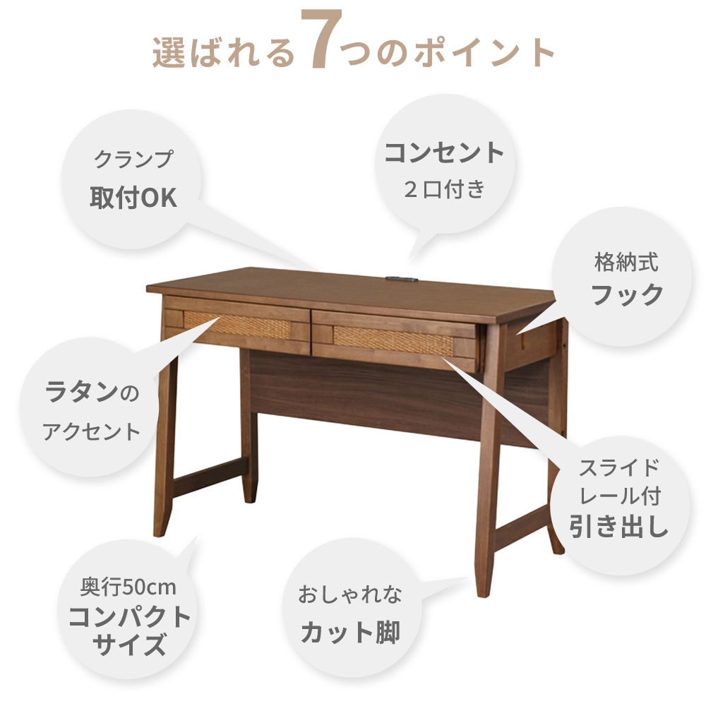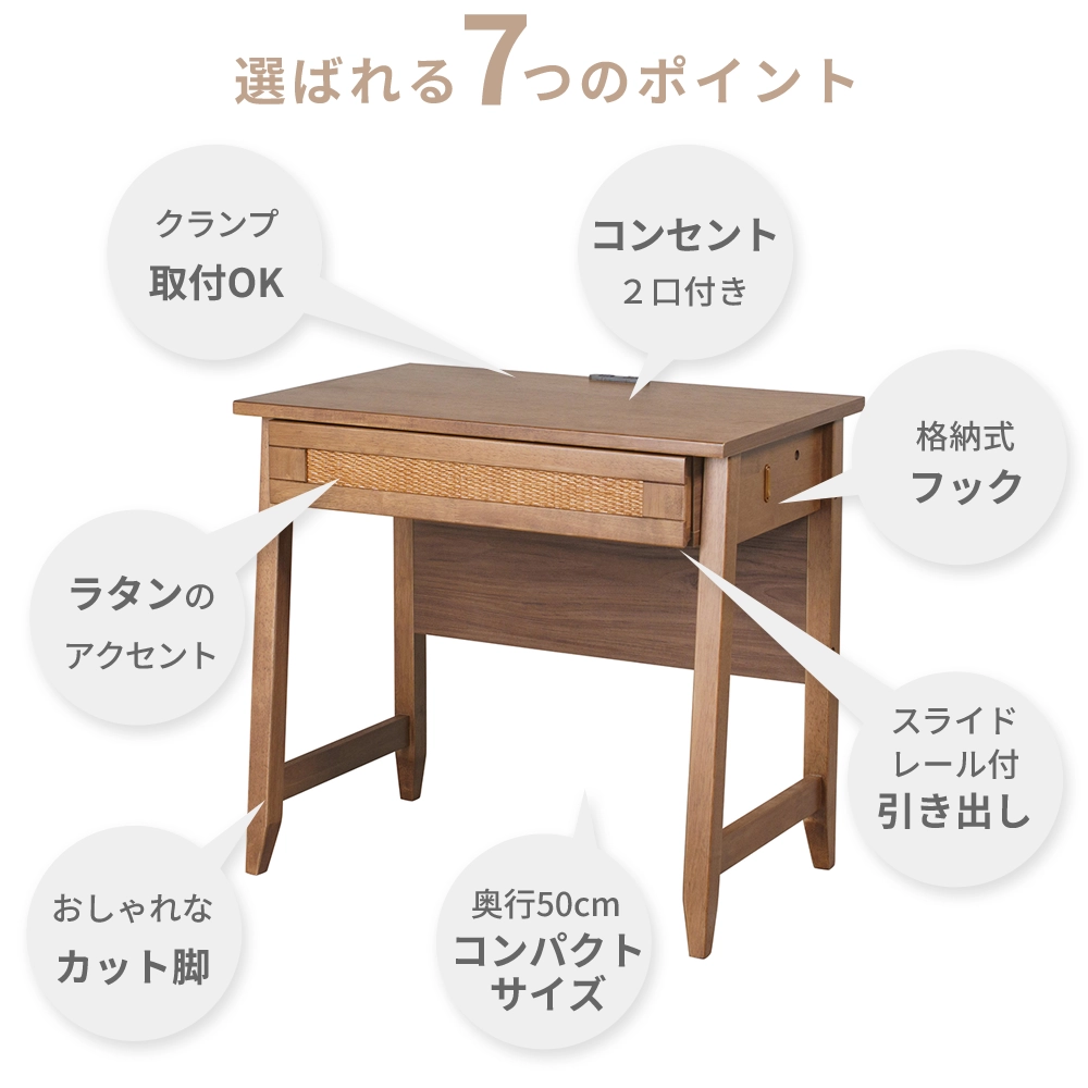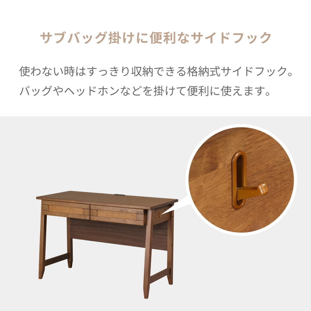お子様の学習から大人のテレワークまで永く愛せる、ラタン×天然木のナチュラルデザインのデスクです。