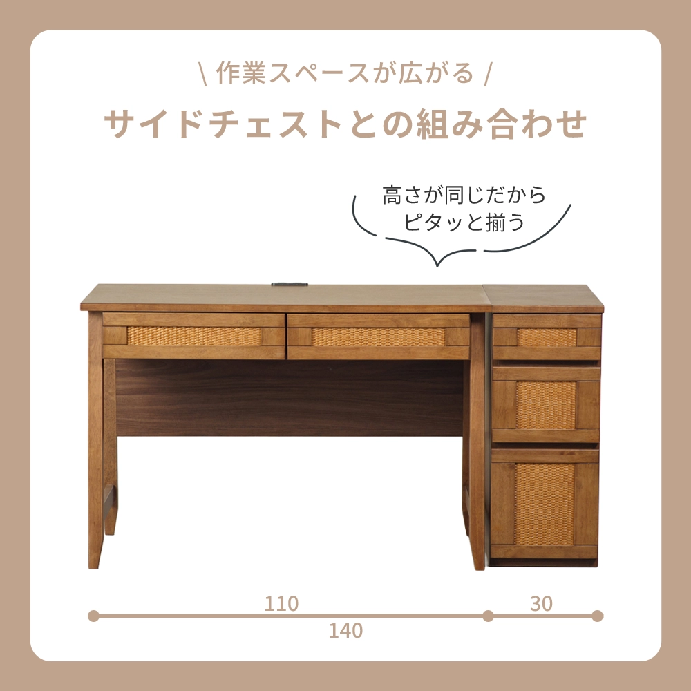 お子様の学習から大人のテレワークまで永く愛せる、ラタン×天然木のナチュラルデザインのデスクです。