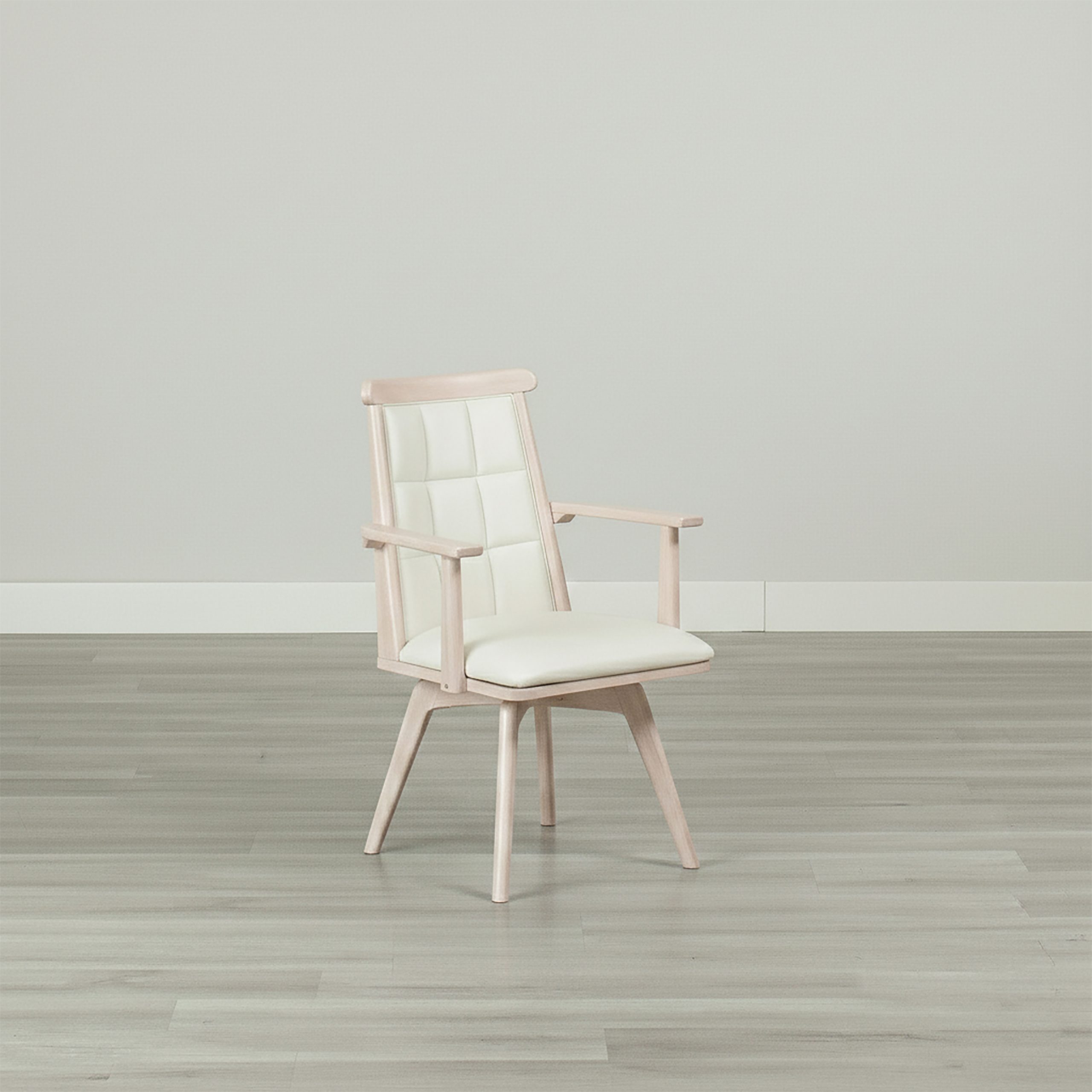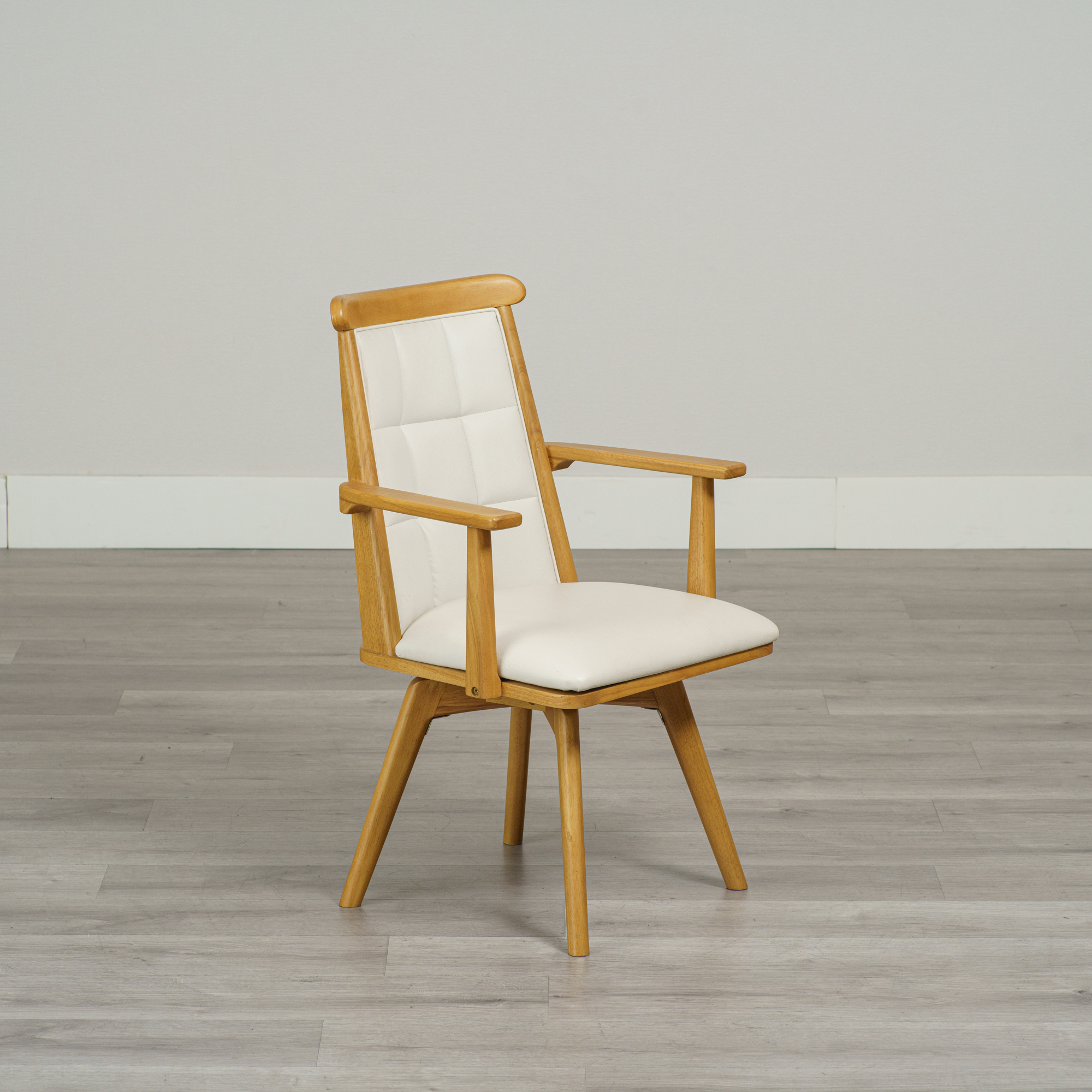 天然木天板は40mmのボリュームタイプ。チェアーは肘付回転なので、ゆったりお寛ぎ頂けます。