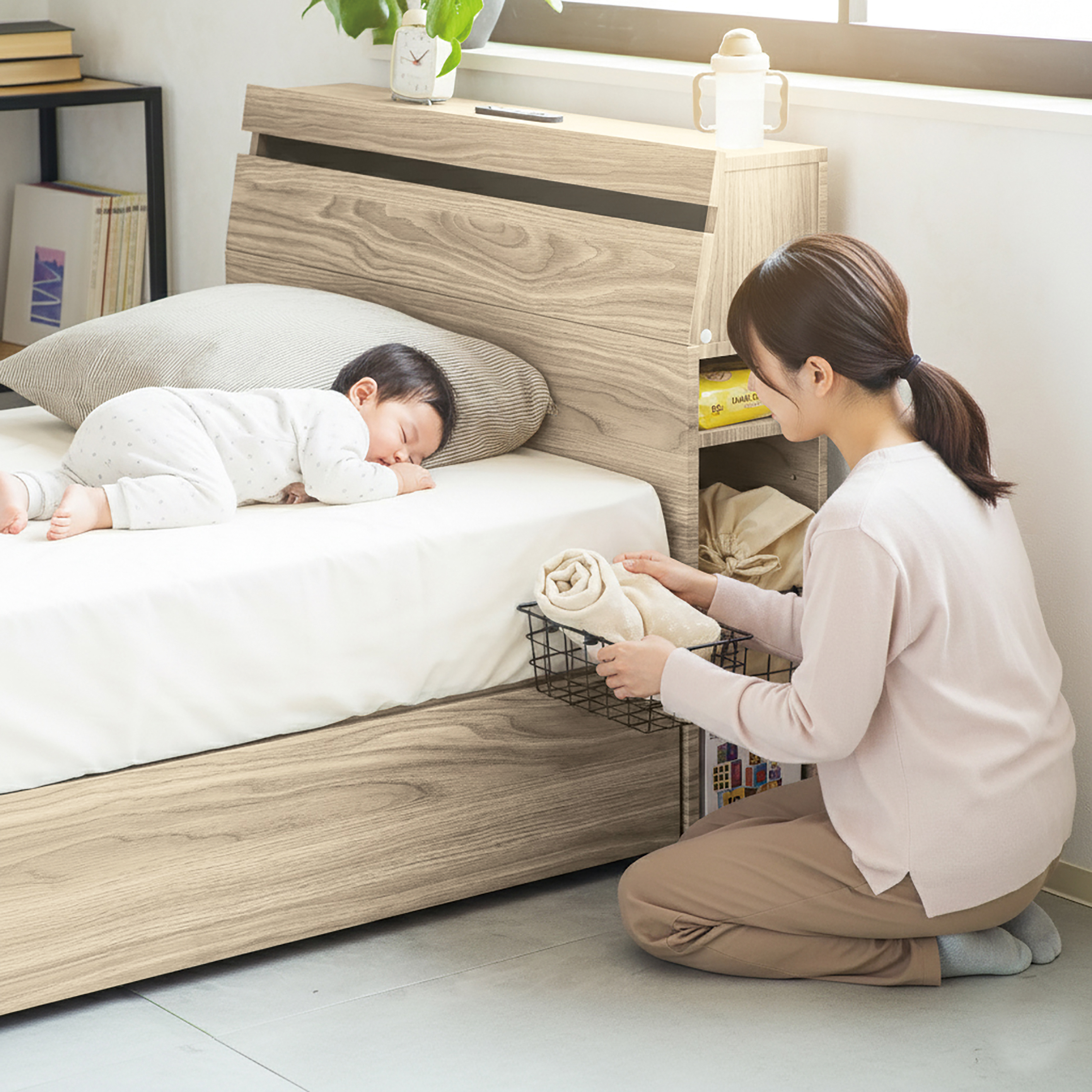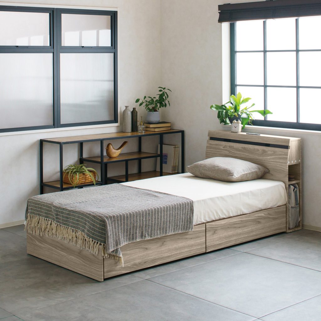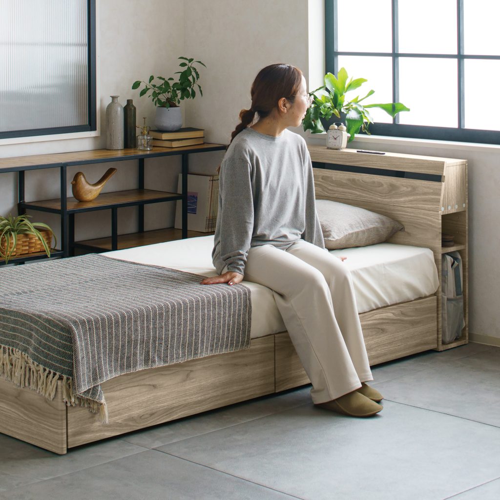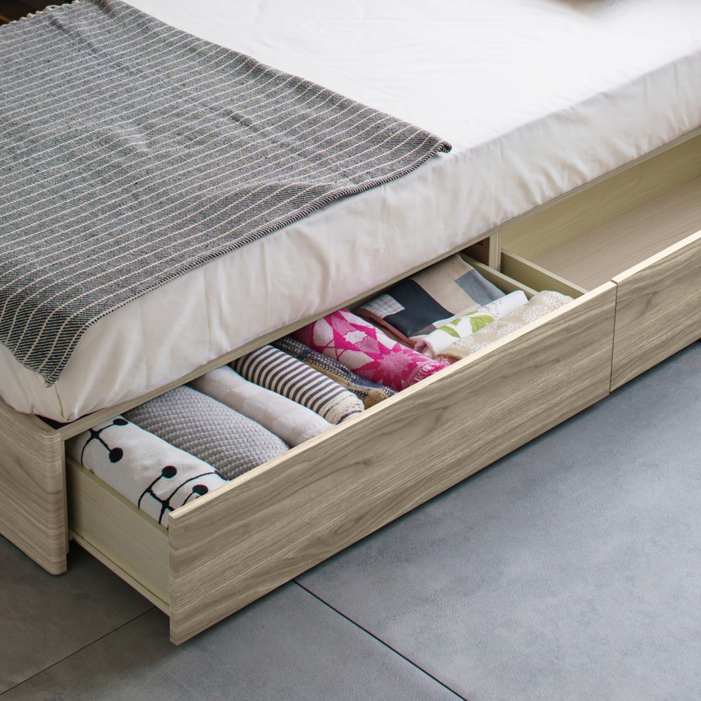 寝ている間も、備えはすぐそばに。いざという時探さなくてもいい備えを枕元のスペースに収納。